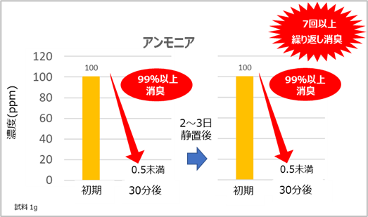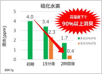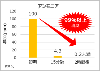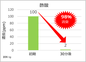 アンモニア・硫化水素・トリメチルアミン・酢酸などの悪臭や複合臭に消臭効果を発揮します。**